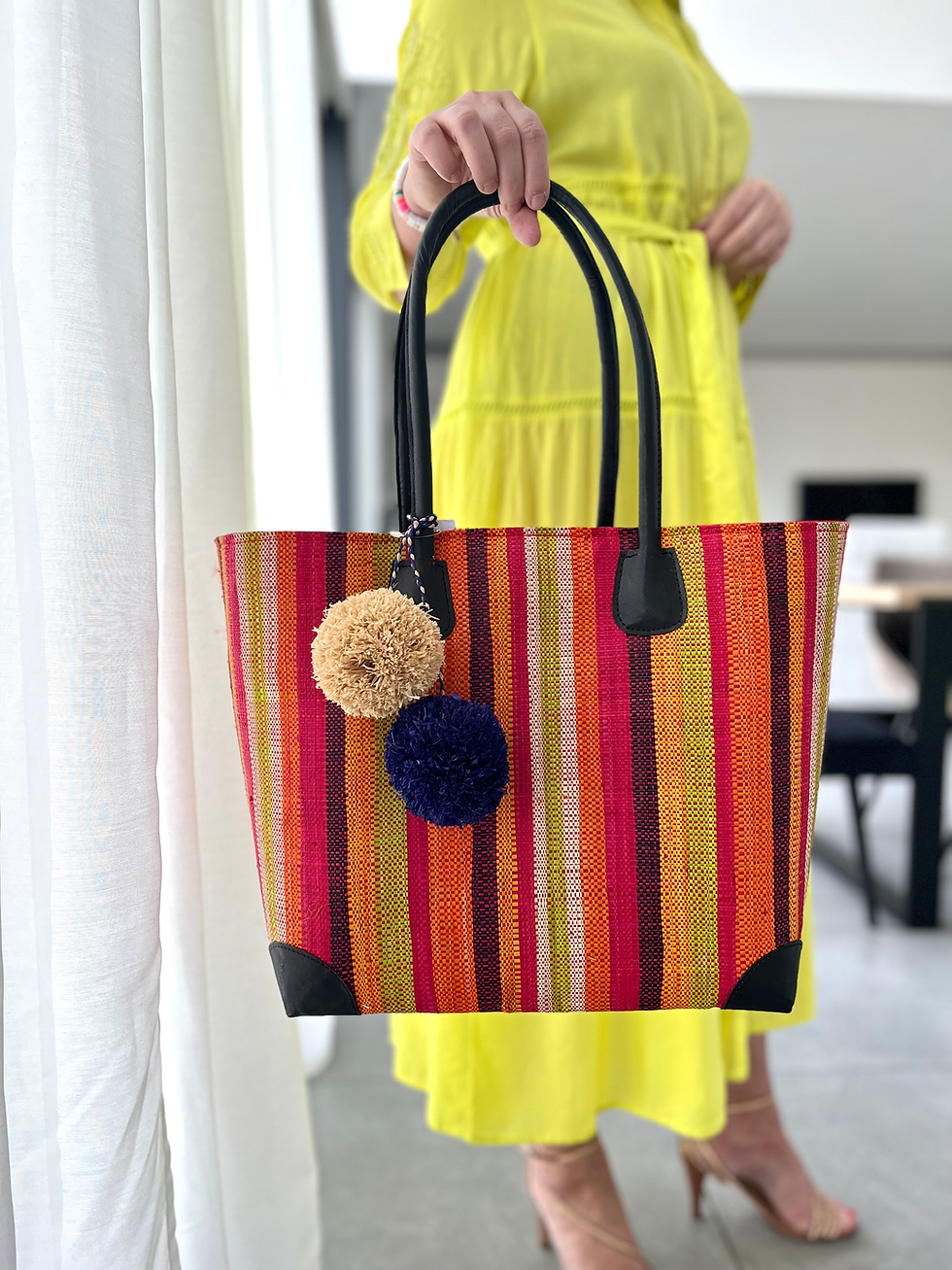 61422 Raffia handtas multicolor strepen groot formaat LOLO DECO