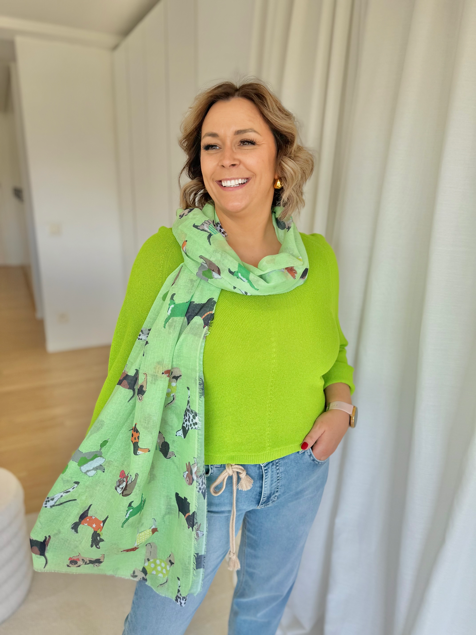 68154 Groene sjaal met multicolor hondjes LM
