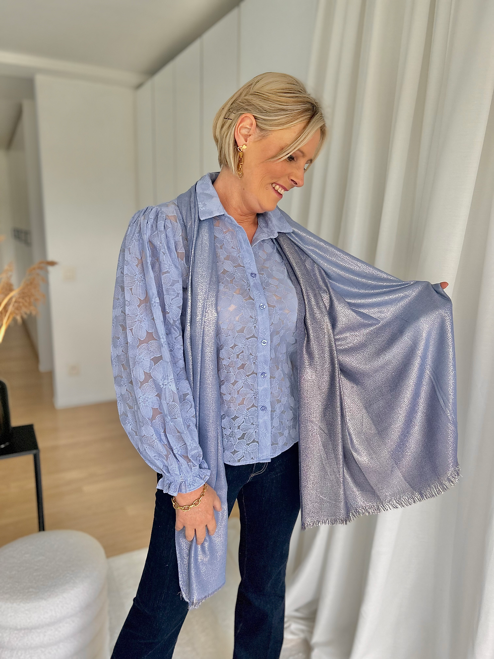 Fijne sjaal in grijs/blauwe glitterkwaliteit LM
